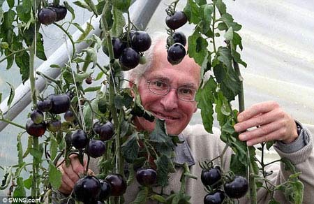 Những quả cà chua đen, loại trái cây chứa nhiều chất chống ung thư, đã xuất hiên trong một trung tâm về giống cây tại Anh.